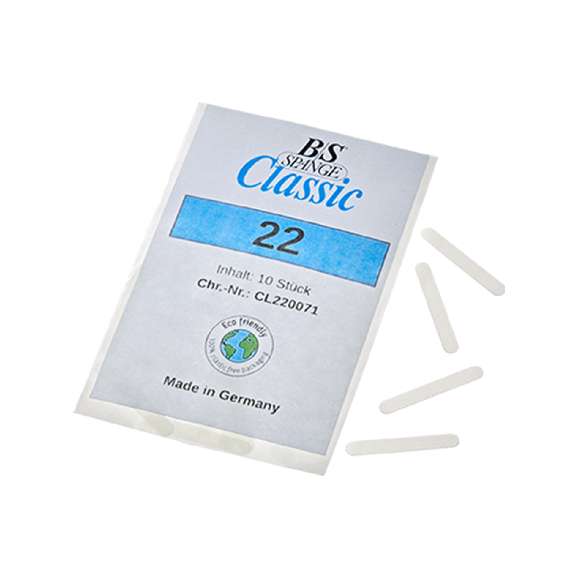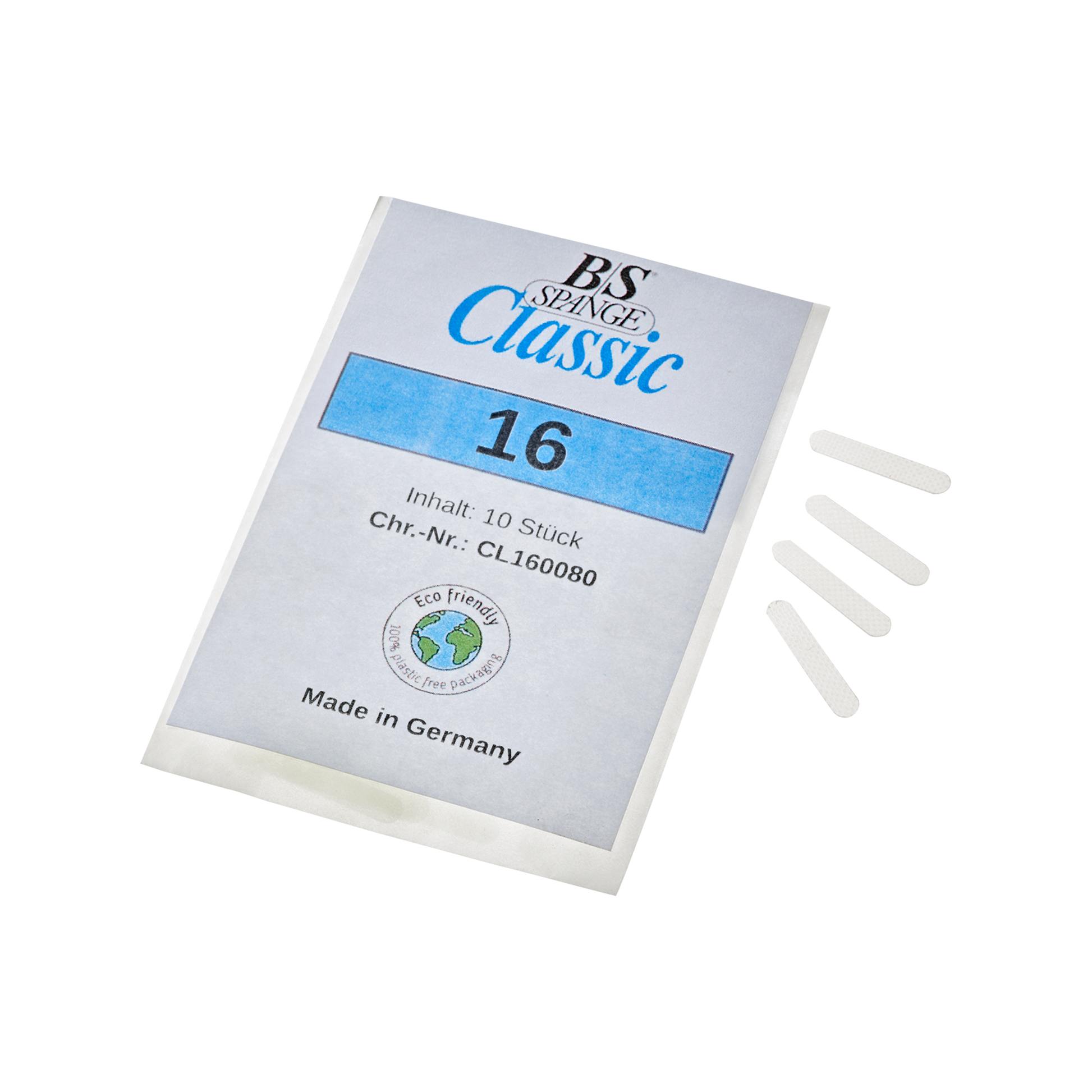 Die B/S Spange Classic ist in verschiedenen Größen erhältlich, um eine optimalen Sitz bei unterschiedlichen Nagelformen und -größen zu gewährleisten. Sie besteht aus glasfaserverstärktem Duroplast und ist bis heute die Basis des gesamten B/S Spangen Sortiments.